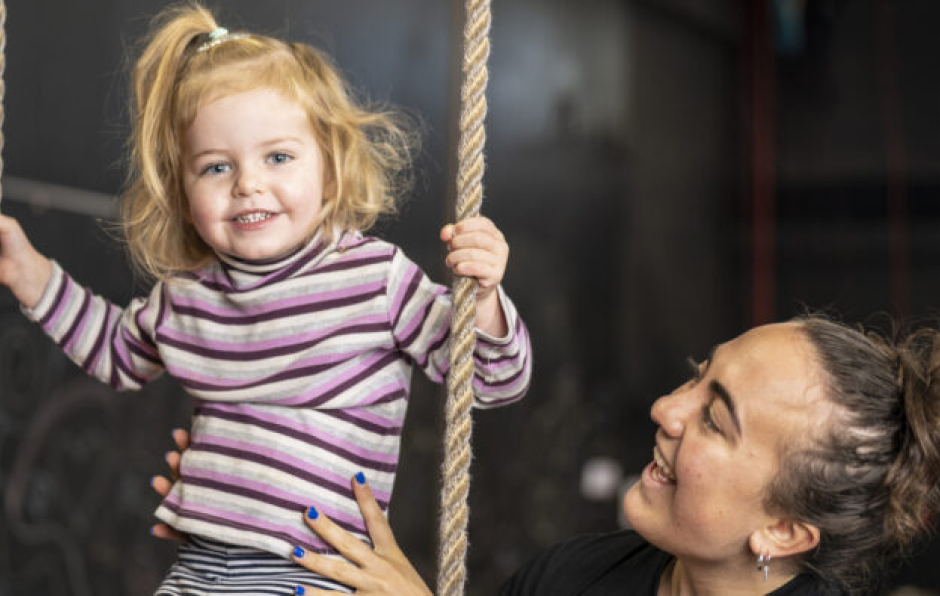 A unique interactive class designed to introduce your child to circus at an early age. You and your child will work together to explore activities such as obstacle courses, acrobalance, juggling, basic tumbling, low trapeze, silks, min