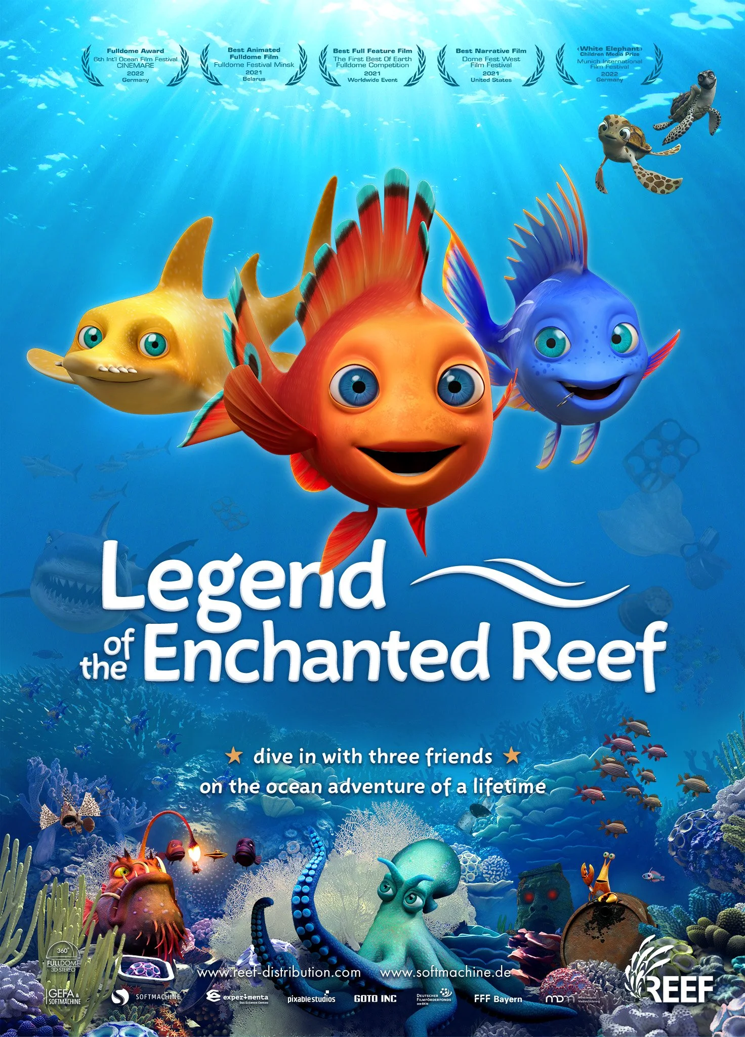 When their home reef is destroyed by a fishing trawler, three brave fish set out on a quest across the vastly polluted ocean to find the “Enchanted Reef” – a mythical underwater haven free from humans…