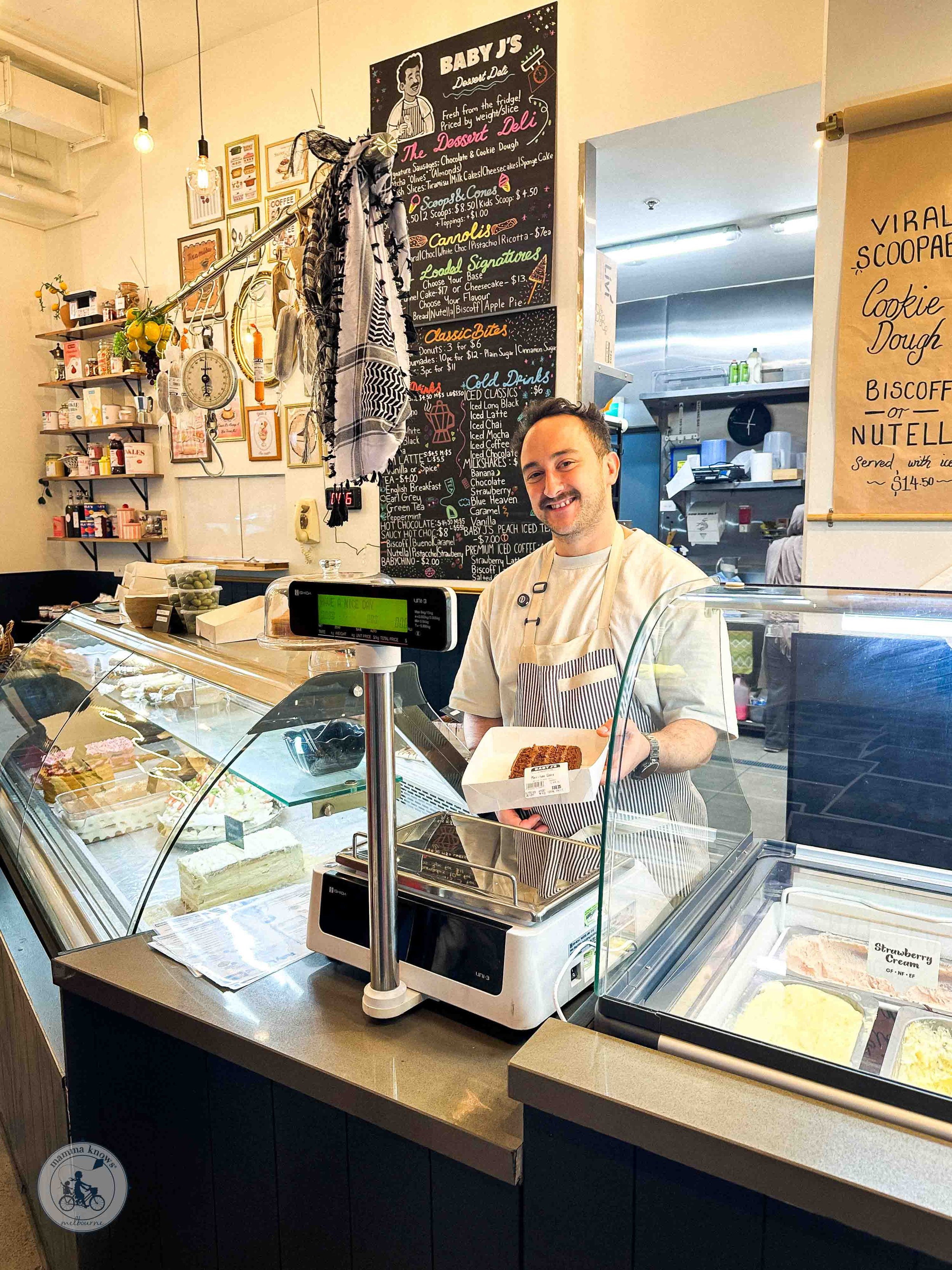 /If you love a good old-school deli but also have a serious sweet tooth (just like Mamma), then Baby J’s Dessert Deli is right up your alley. Think classic deli vibes — but instead of cold cuts, it’s all about cake, slices and over-the-top desserts that are impossible to walk past. It’s a “slice it, weigh it, devour it” kind of place… and honestly, Mamma is obsessed.
